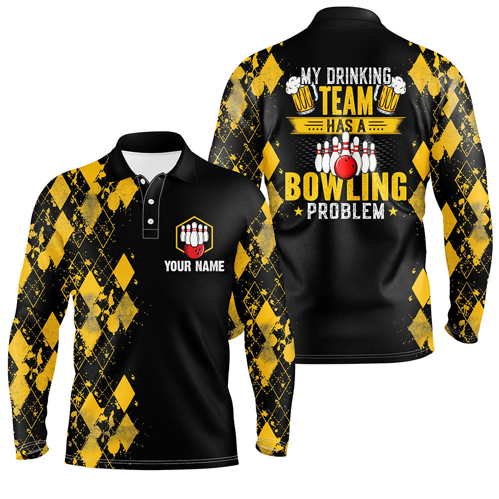 Funny yellow argyle Bowling beer Polo shirts for men custom My drinking team has a bowling problem NQS6870