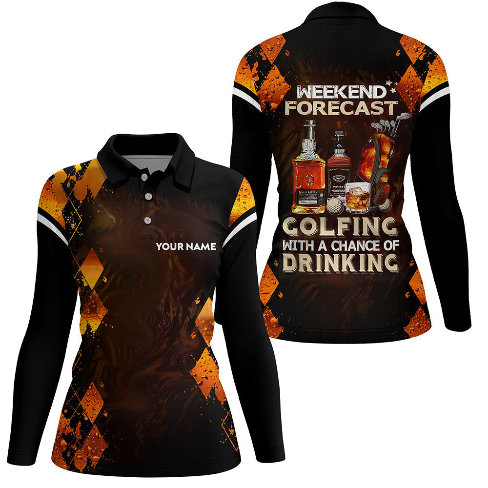 Golf and wine argyle Women golf polo shirt custom Weekend forecast golfing with a chance of drinking NQS8848