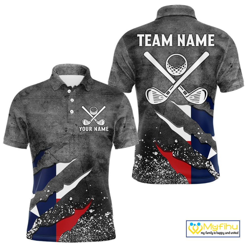 Gray Grunge Texas Flag Mens golf polo shirts Custom patriotic Golf attire for men NQS10580