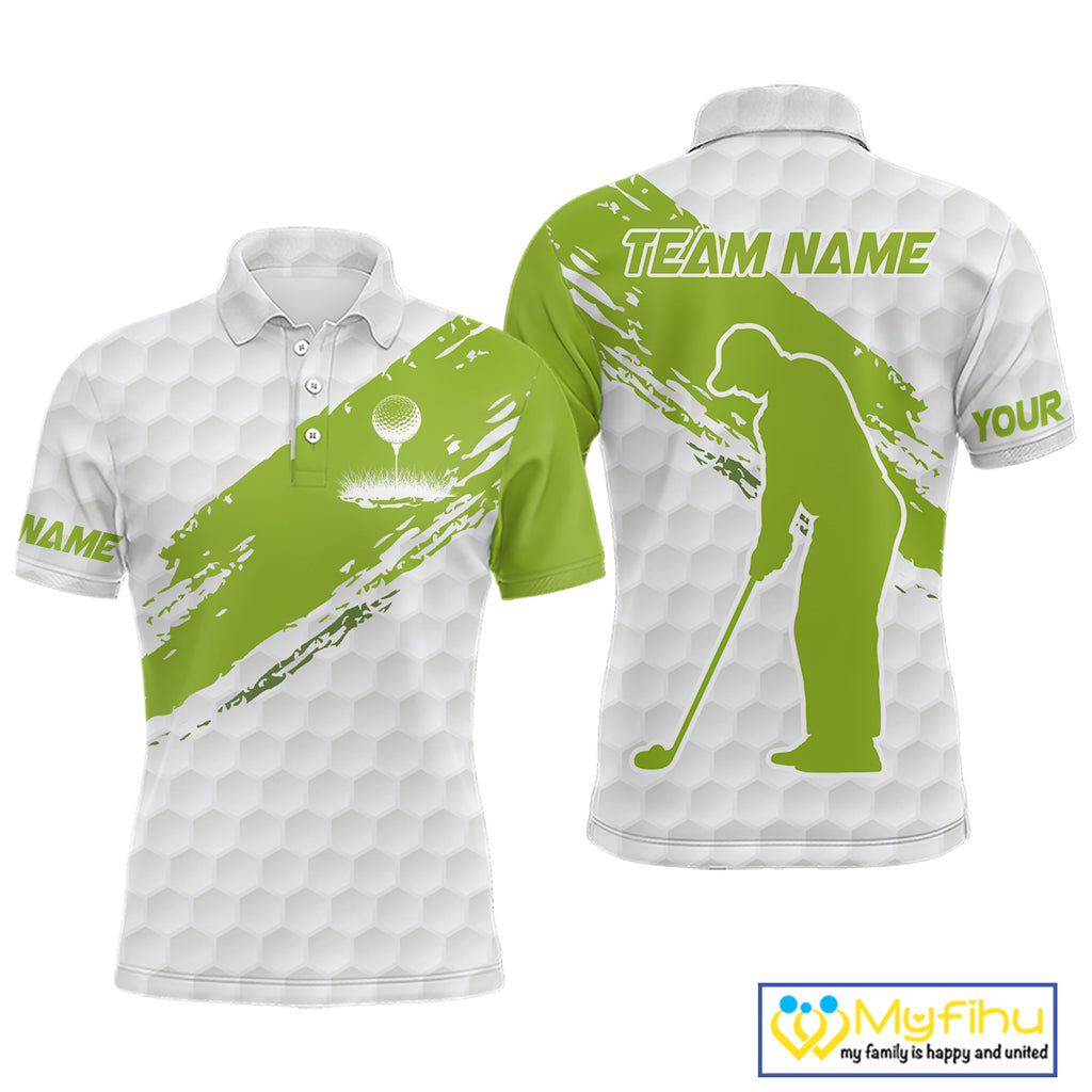 Green and White golf ball pattern Mens golf polo shirts custom team name mens golf clothes NQS9974