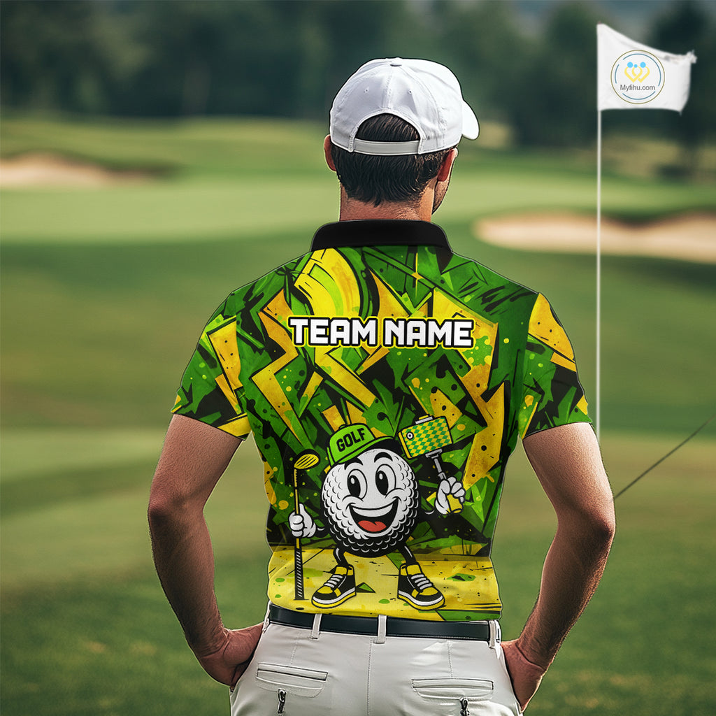 Green and Yellow camo funny golf ball Mens golf polo shirts custom team golf outfits for men NQS10176
