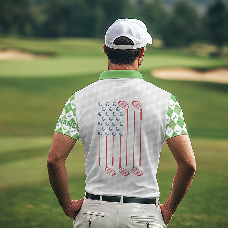 Green argyle pattern American flag white Men golf polo shirts custom patriotic gifts for golf lovers NQS9595