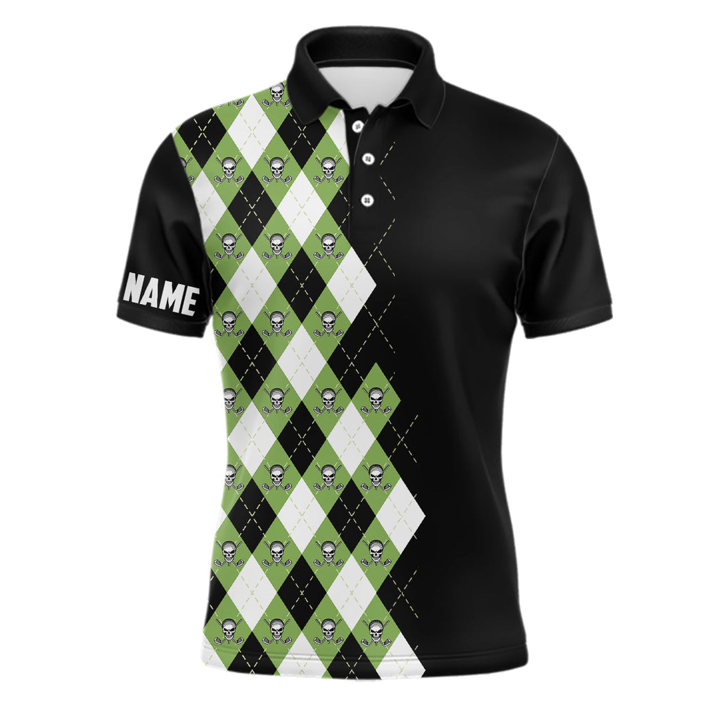 Green argyle plaid skull pattern custom black mens golf polo shirt, golf tops for men golfing gifts NQS6844
