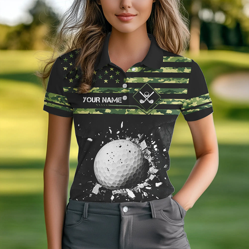 Green Camo American flag black Women golf polo shirts custom patriotic team golf apparel for ladies NQS9517