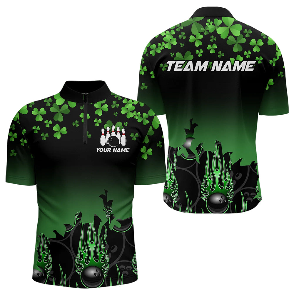 Green shamrock Flame bowling shirts for men Custom St Patrick Day black team league bowling jerseys NQS9390