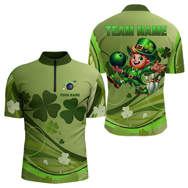 Green shamrock Lucky Men Bowling Polo, Quarter Zip Shirts Custom St Patrick Day Team bowling Shirts NQS9328