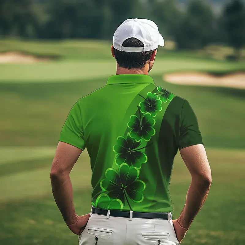 Green shamrock Lucky Mens polo golf shirts Custom St Patrick Day golf apparel for men NQS9485