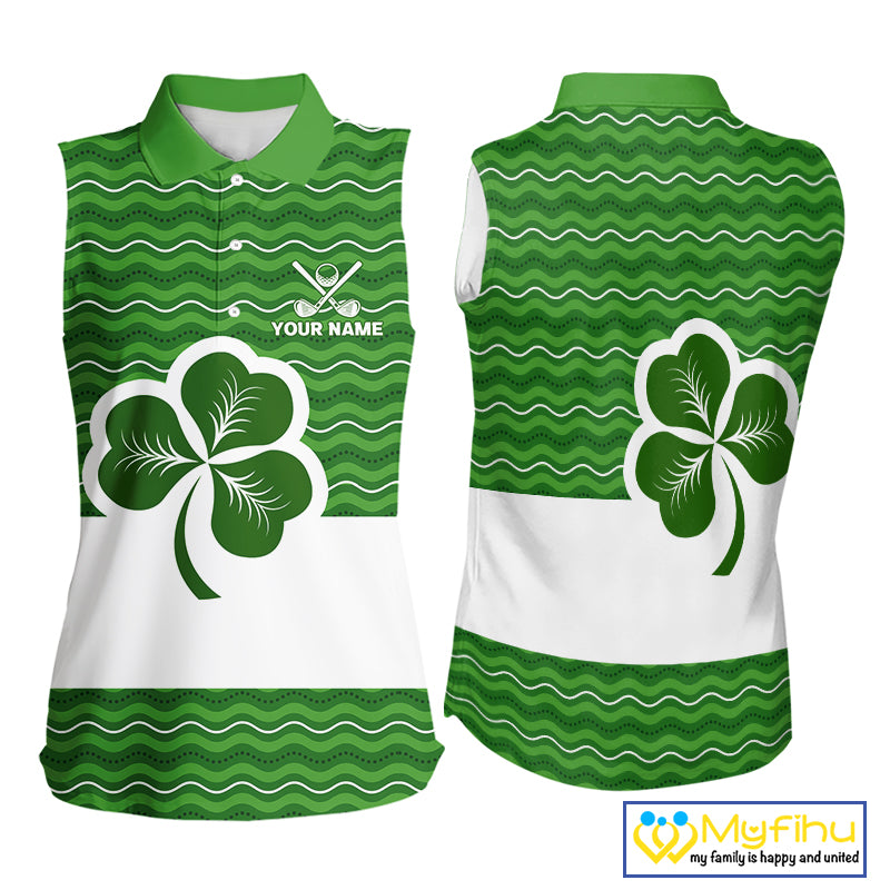 Green shamrock Lucky Sleeveless Polo golf shirts Custom St Patrick Day team golf jerseys NQS10508