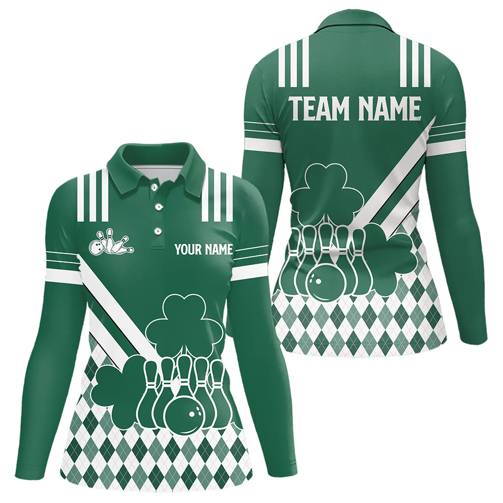 Green & White argyle pattern shamrock St Patrick's Day Women bowling shirts Custom Bowling Team Jersey NQS9383
