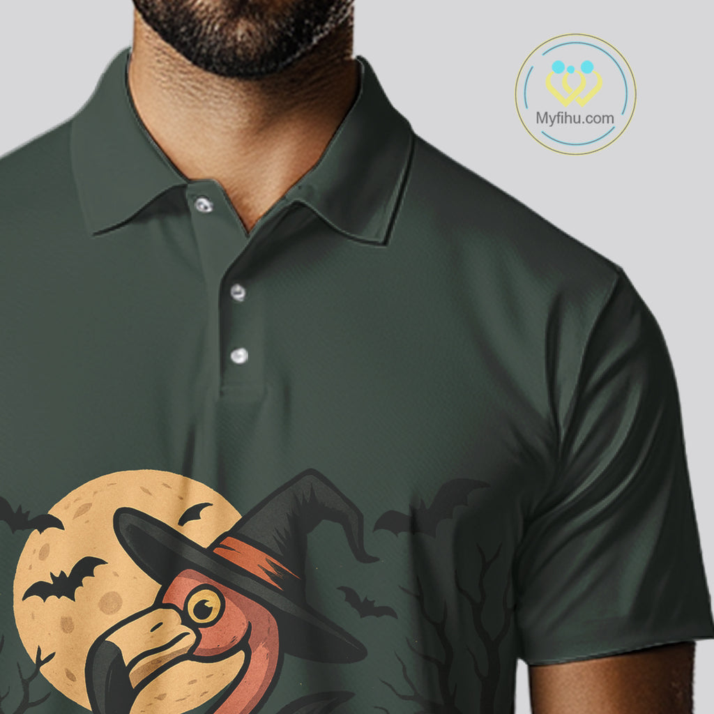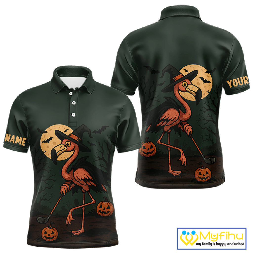 Halloween flamingo Mens golf polo shirt custom Halloween golf tops for men, unique golf gifts NQS10378