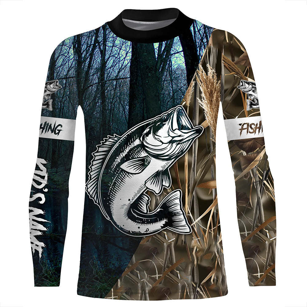 Largemouth Bass Fishing Camo Custom UV Protection Long sleeve fishing shirts Personalized Fishing Gift NQS394