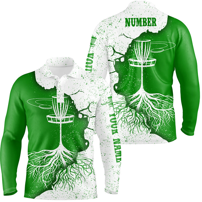 Mens Disc Golf Polo Shirt White & Green Custom Disc Golf Shirts For Men Disc Golf Gifts LDT0732
