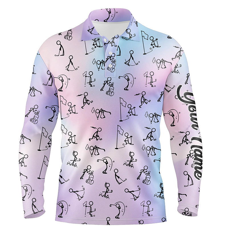 Rainbow Gradient Stick Figures Playing Golf Mens Polo Shirt Custom Golf Tops For Men Golf Gifts LDT1044