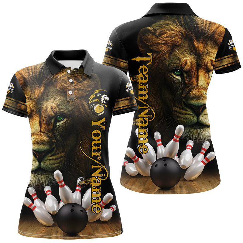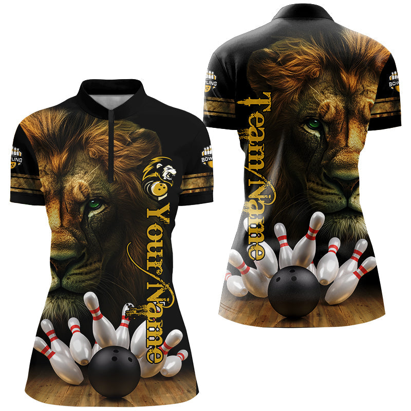 Lion Bowling Polo, Quarter Zip Shirt For Women Custom Bowling League Shirt Bowling Team Jerseys Outfit NQS8561