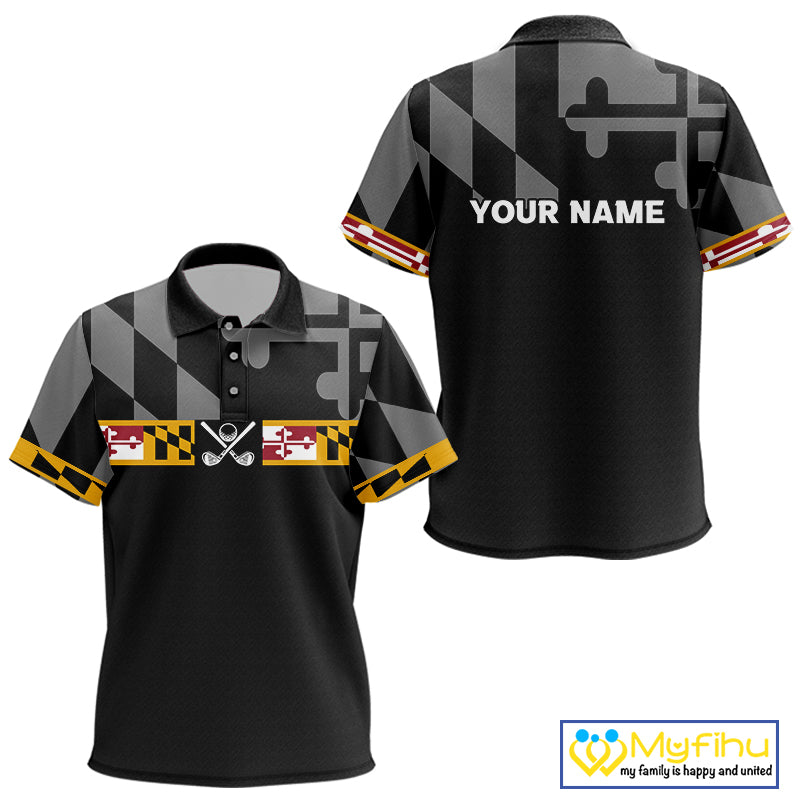 Maryland Flag black Kid golf polo shirt Custom Patriotic Kid Golf top, gifts for golf lovers NQS10195