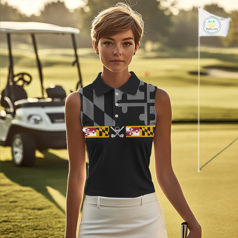 Maryland Flag black Women sleeveless golf polo shirt Custom Patriotic Golf top, gifts for golf lovers NQS10195