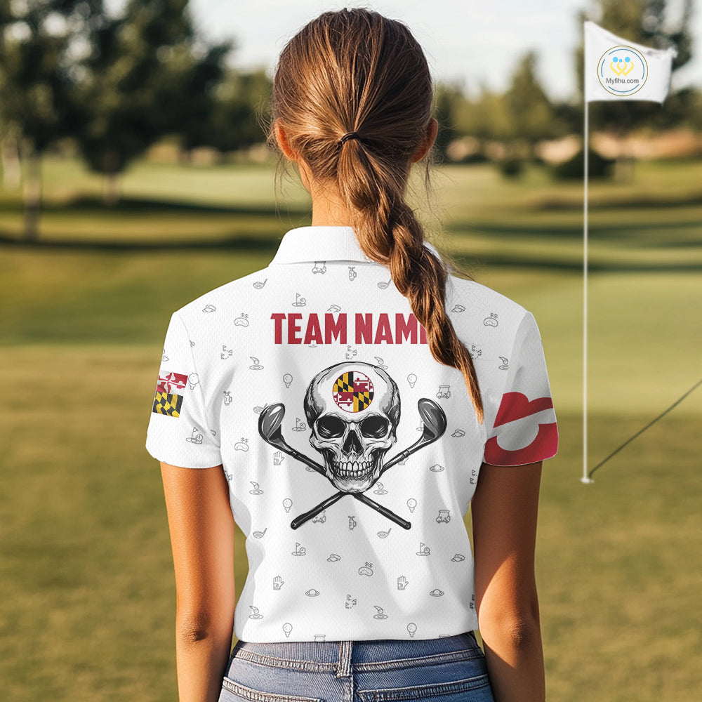 Maryland Flag Golf Clubs Skull Golf Camo Women golf polo shirts Custom Patriotic Golf Team Jersey NQS9937