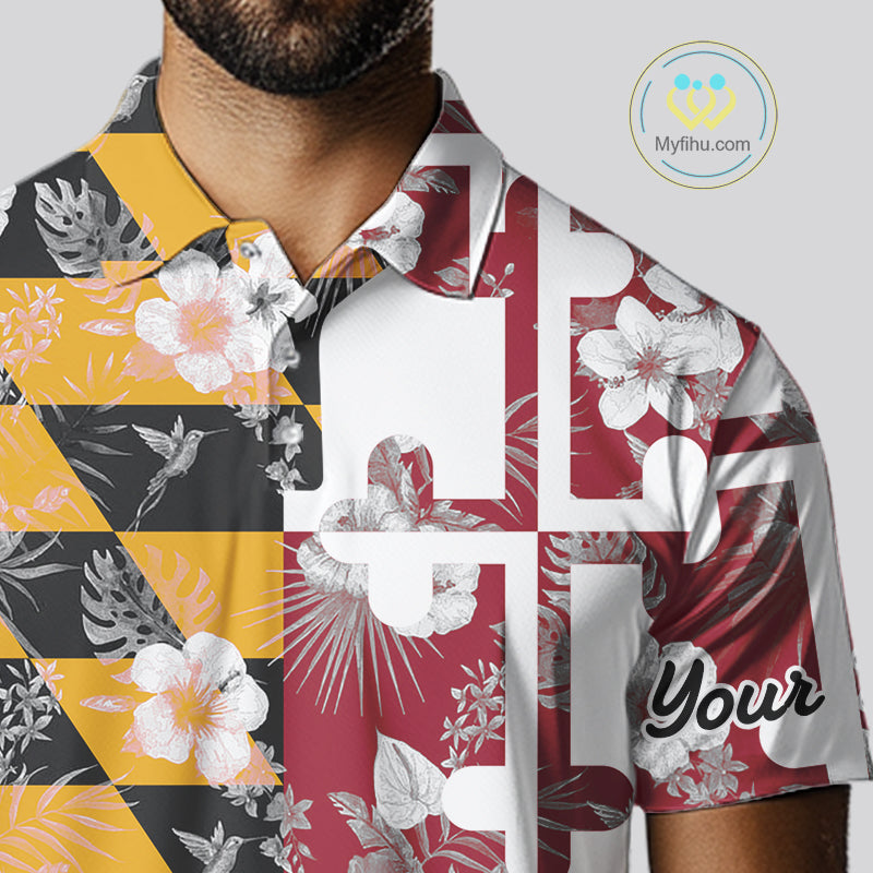Maryland Flag tropical flower pattern Mens Golf polo shirts Custom mens patriotic golf shirts NQS10064