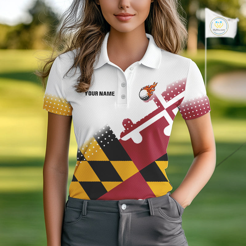 Maryland Flag Women golf polo shirt Custom patriotic golf outfit for ladies NQS10105