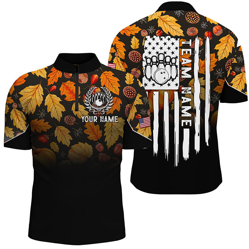 Mens bowling shirt Custom Autumn leaf camo Thanksgiving American flag patriotic bowling team jerseys NQS8755