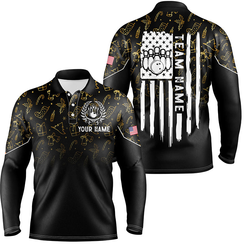 Mens bowling shirt Custom Gold Christmas pattern American flag patriotic bowling team jerseys NQS8756