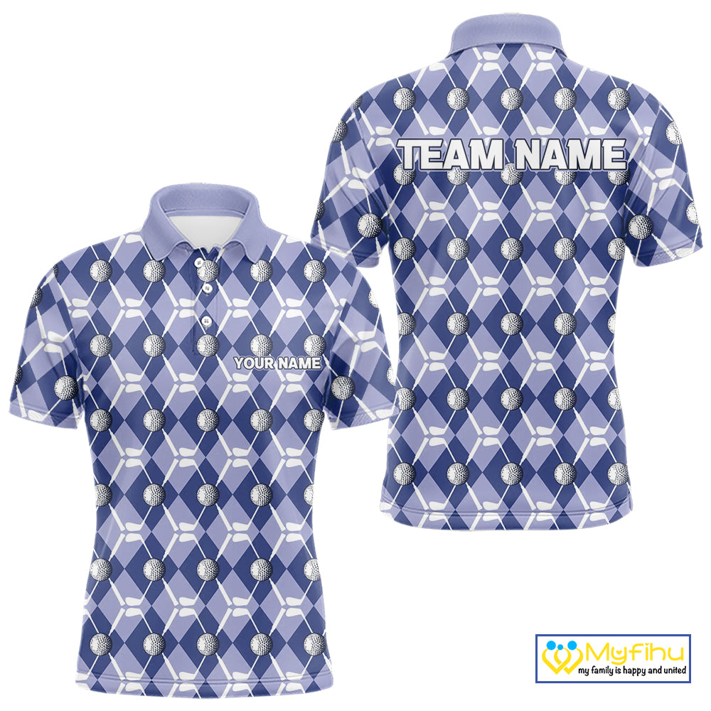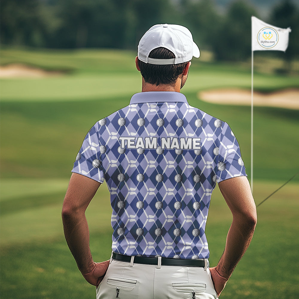 Mens golf polo shirts custom blue argyle plaid pattern golf attire for men, golfer gifts NQS10434