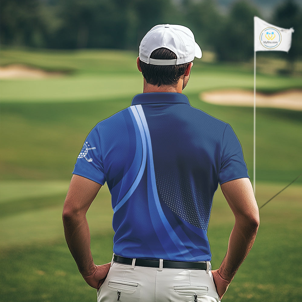 Mens golf polo shirts custom name Blue golf shirt, tournament golf tops for mens, golf gift NQS10223