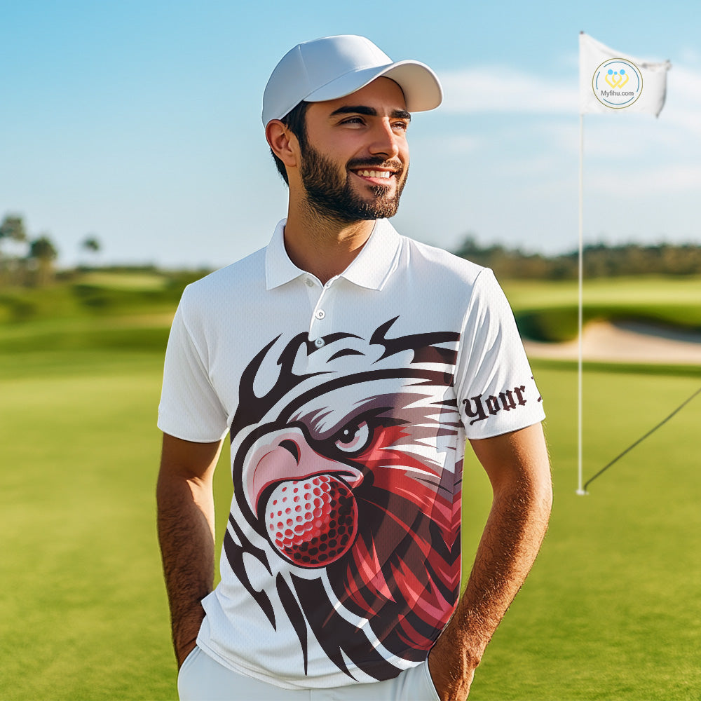 Mens golf polo shirts custom Red Eagle golf ball white golf tops, team golf attire for mens NQS10553
