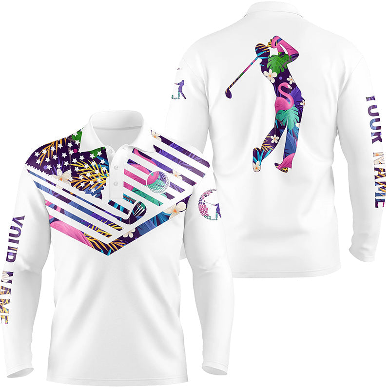 Mens golf polo shirts tropical American flag custom patriotic white golf shirt NQS5768