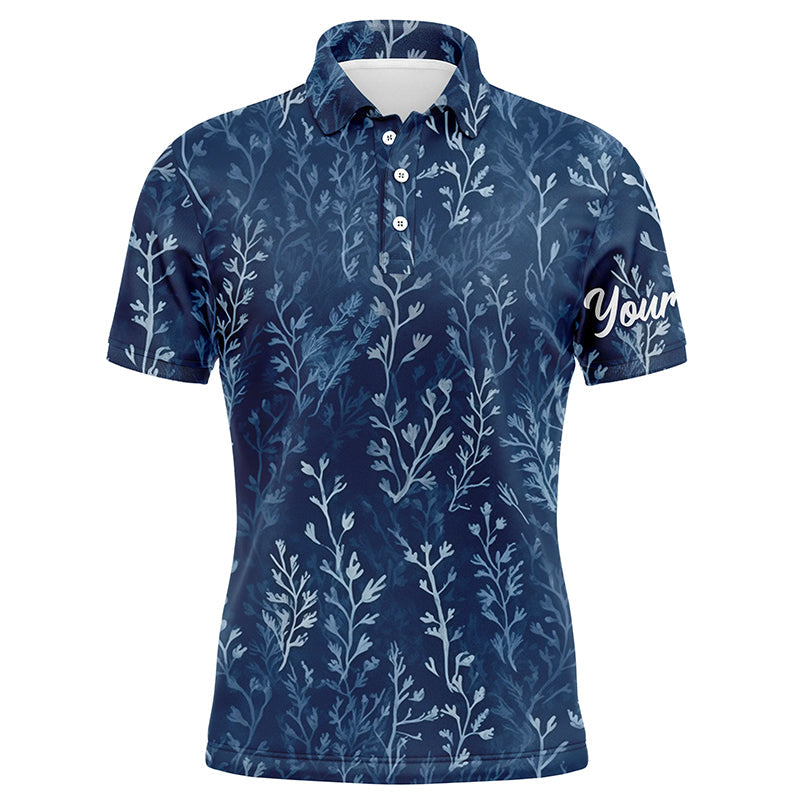 Mens golf polo shirts with navy floral pattern custom name golf shirts, golfing gifts NQS5923