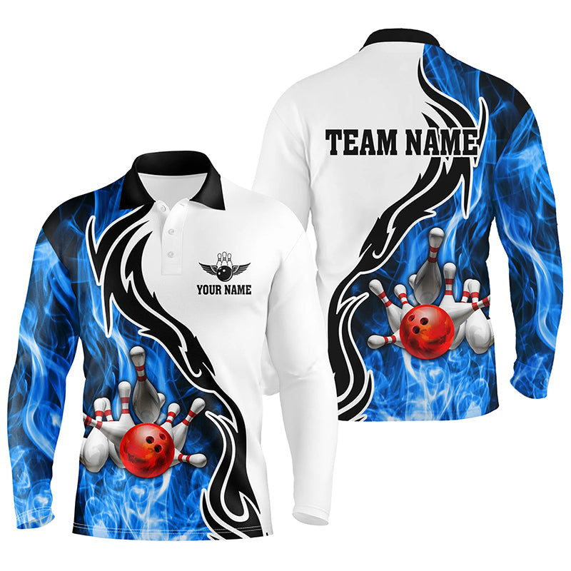 Mens polo bowling shirt Custom bowling ball pins strike team league jersey, bowl gifts | Blue NQS6404