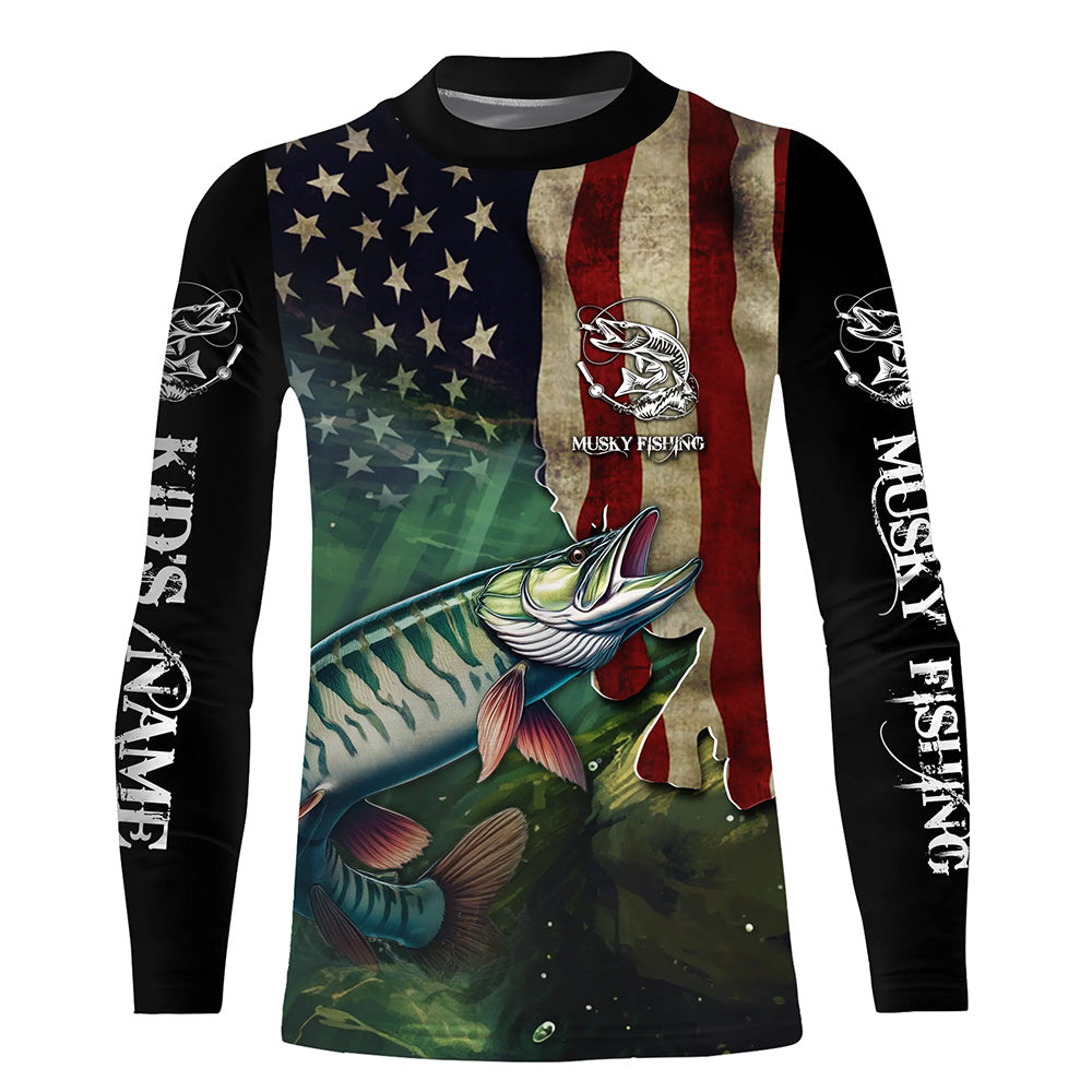Musky Fishing American Flag Patriotic Customize fishing jerseys, personalized fishing gifts NQS481