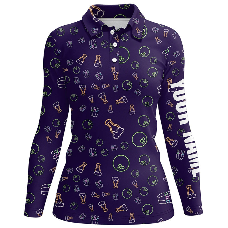 Neon beer glowing Bowling pattern Custom Women bowling polo shirt, bowling team league jerseys NQS6763