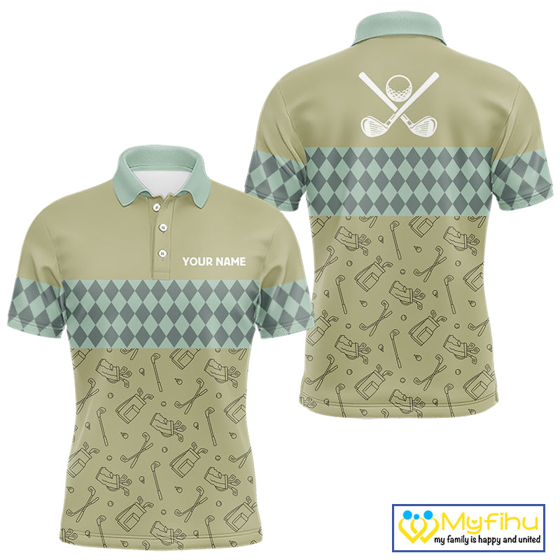 Olive Green Golf Camo argyle pattern Mens golf polo shirts custom name best mens golf wear NQS9973