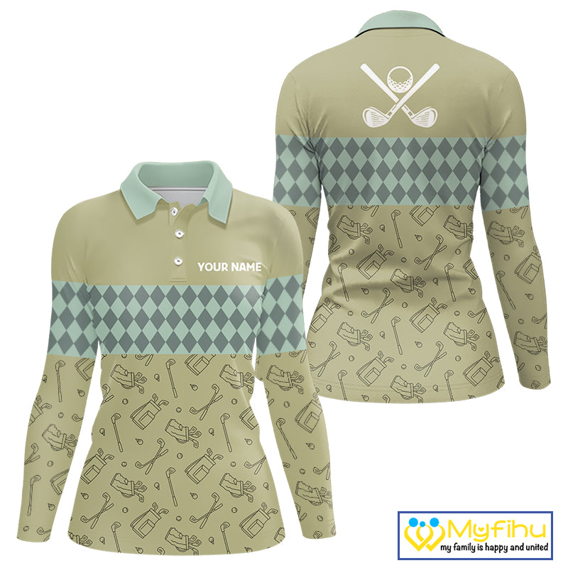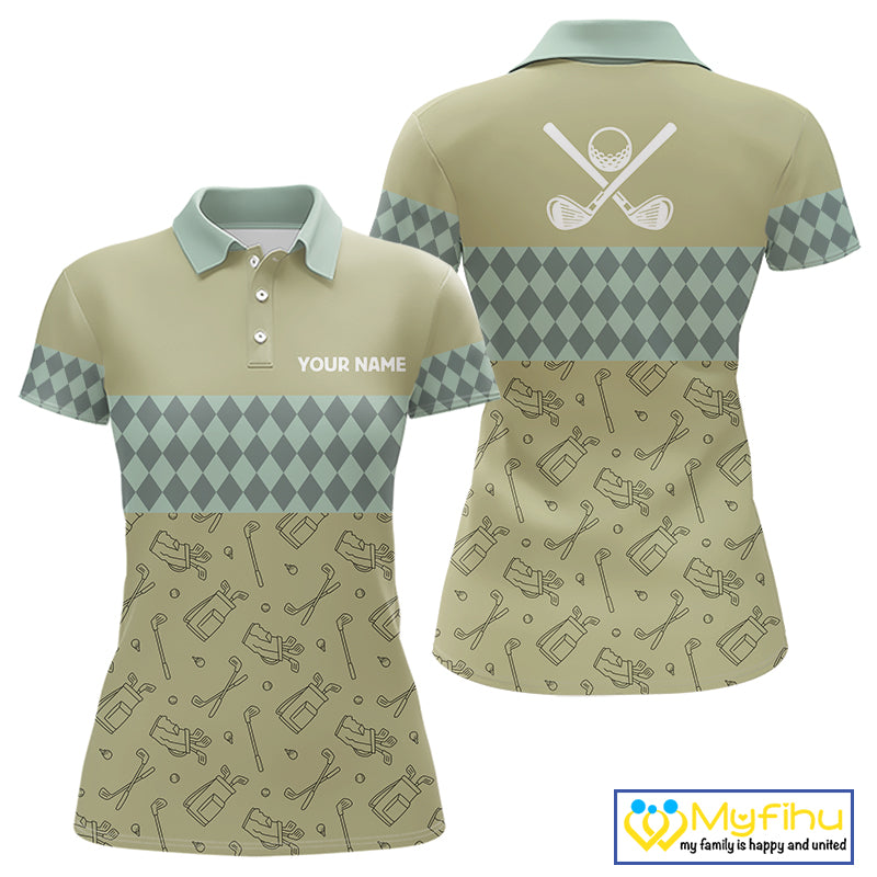 Olive Green Golf Camo argyle pattern Women golf polo shirts custom name best ladies golf wear NQS9973
