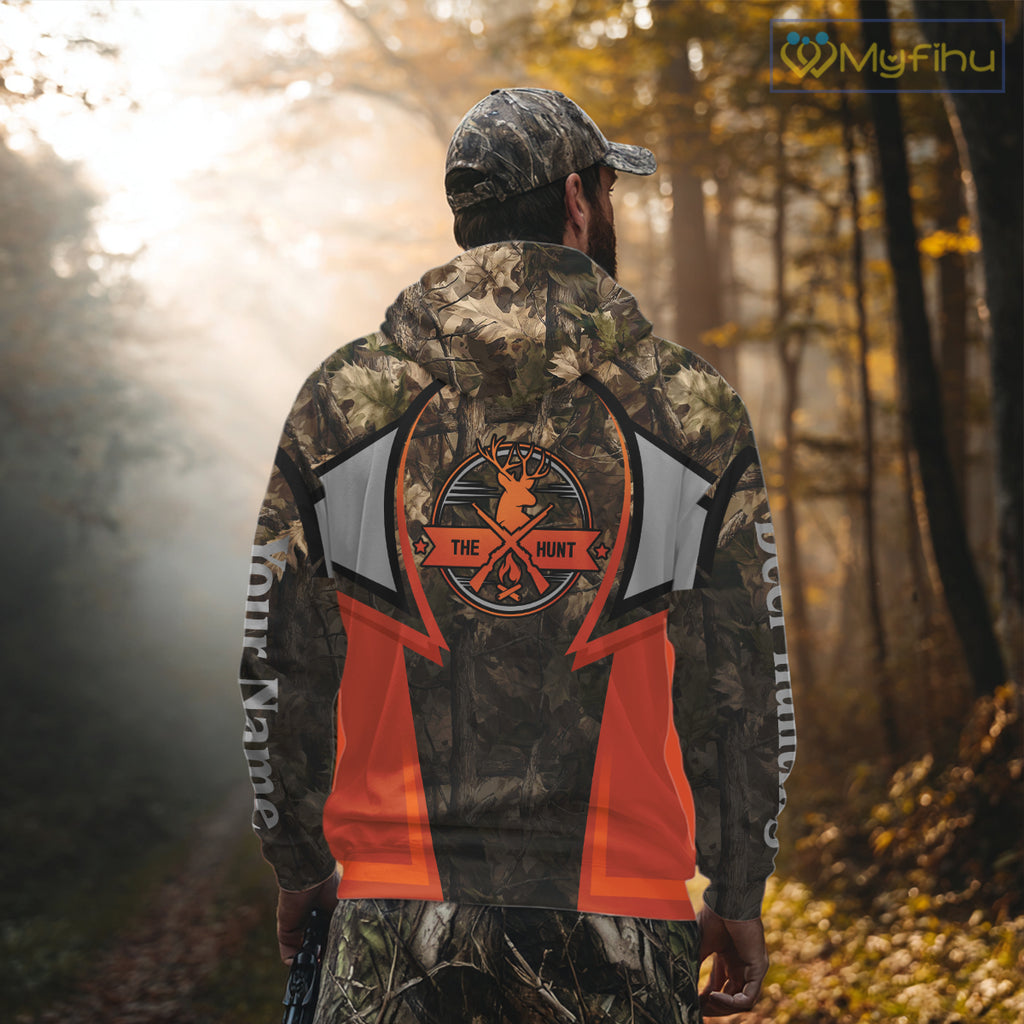 Orange Deer Hunting Brown Camouflage 3D Custom Name Shirts, Best Camo Deer Hunting Gift NBT204