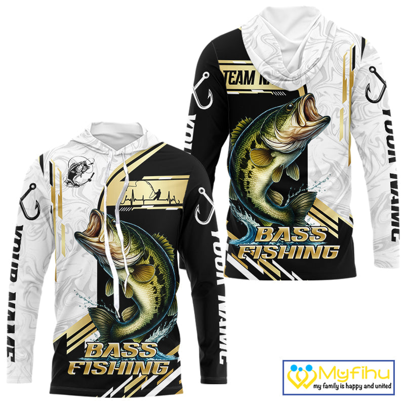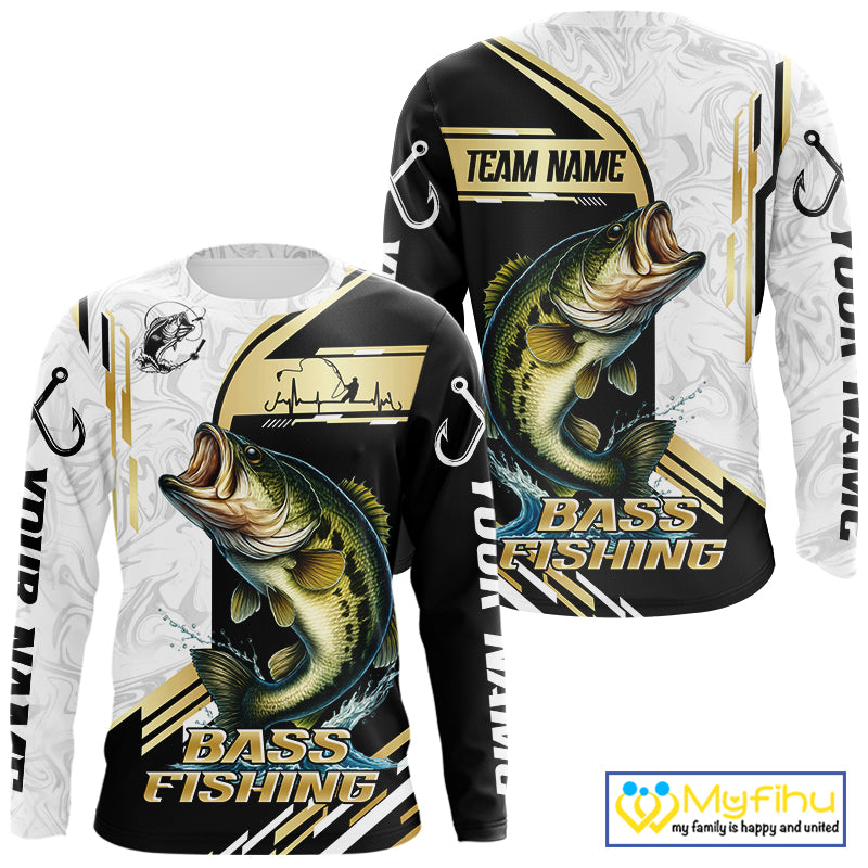 Personaized name Largemouth Bass fishing Custom sun protection Bass fishing team jerseys | Gold NQS9966