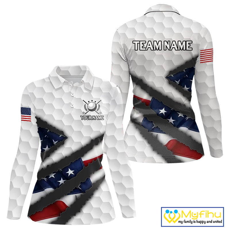 Personalized American Flag Golf polo shirt For Women Custom Patriotic Golf Gifts NQS10428