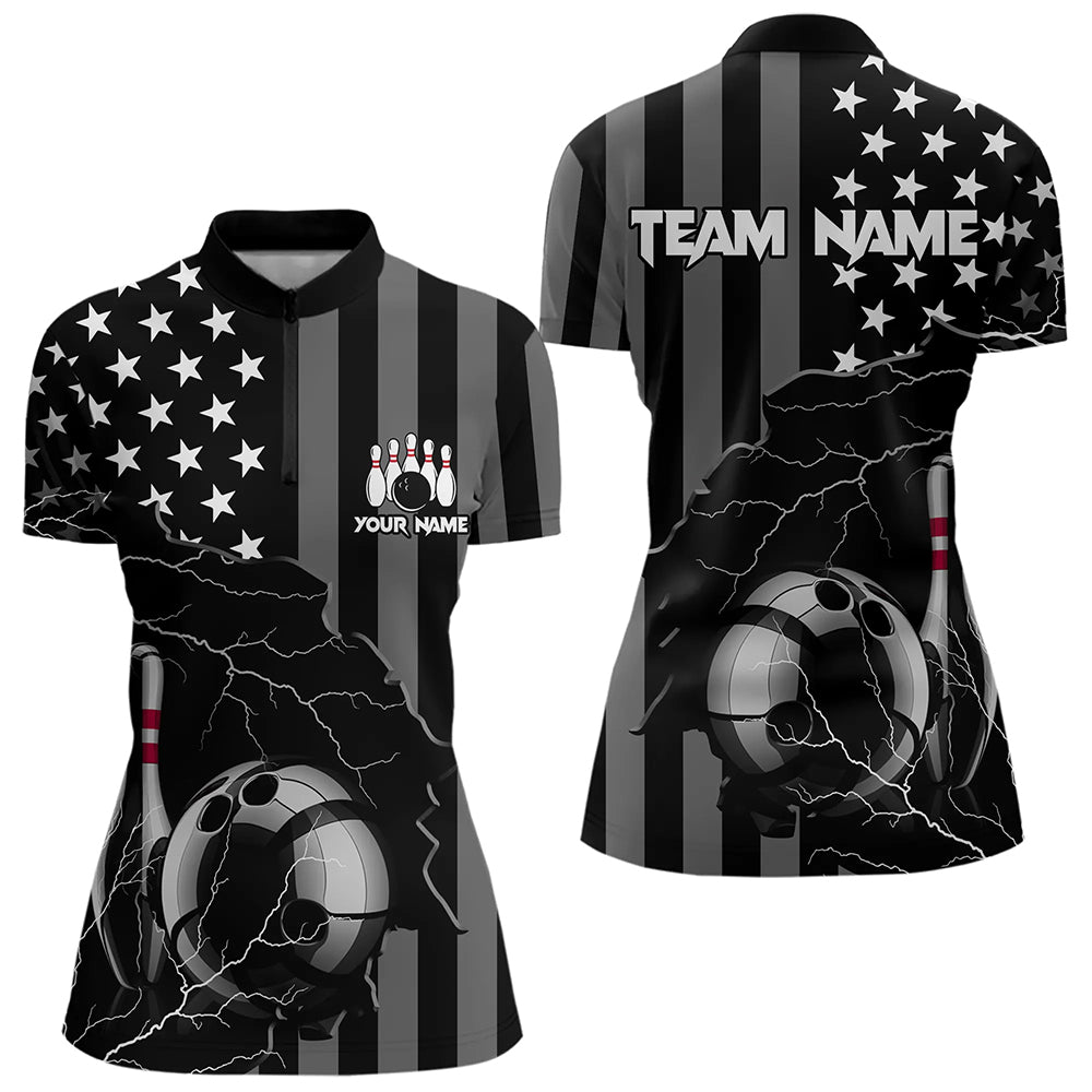 Personalized Black American flag Lightning thunder Custom Bowling Team Shirts For Women Bowling Jersey NQS9538