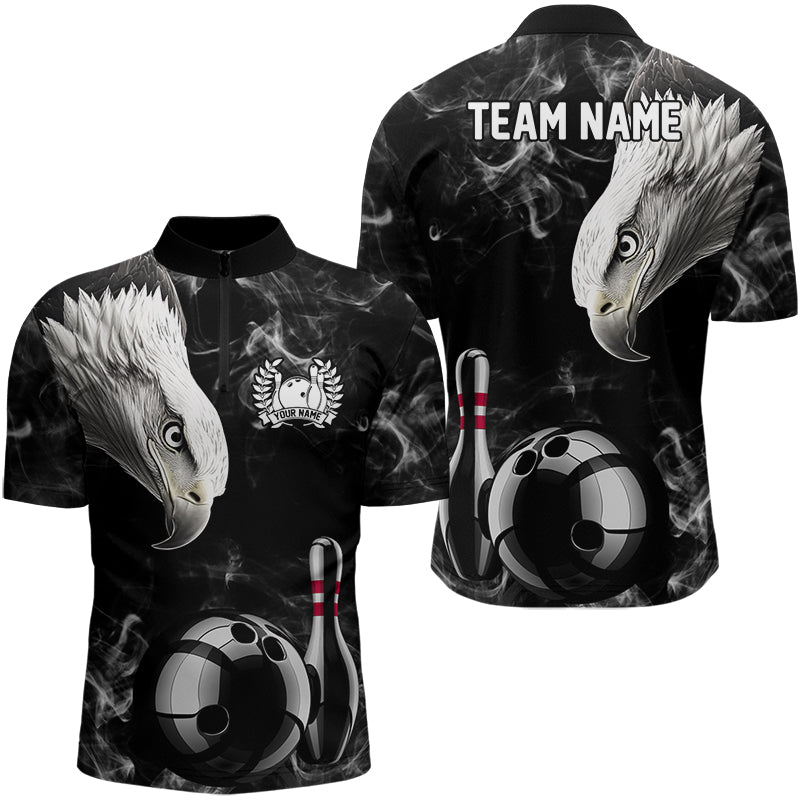 Personalized Black Eagle Smoke Bowling Polo, Quarter Zip Shirts For Men custom Bowling Team Jerseys NQS9049