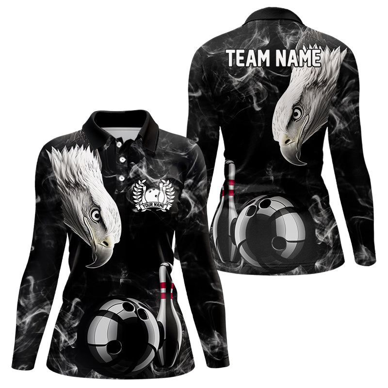 Personalized Black Eagle Smoke Bowling Polo, Quarter Zip Shirts For Women custom Bowling Team Jerseys NQS9049