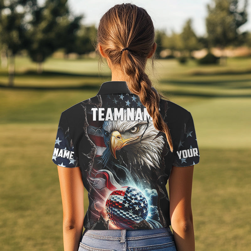 Personalized Eagle American flag Golf Polo Team Shirts For Women Custom Patriotic Ladies Golf attire NQS9620