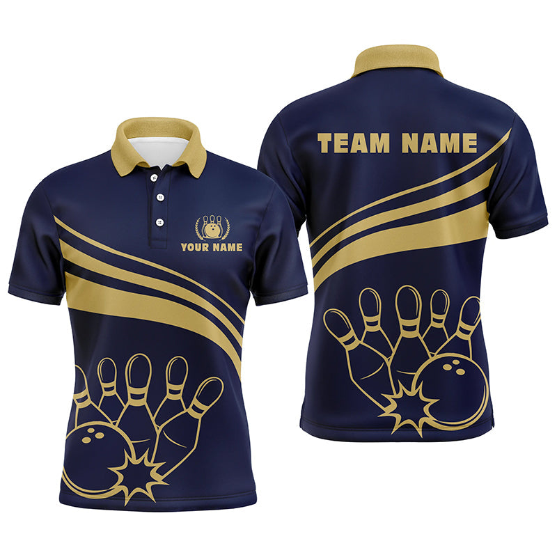 Personalized gold bowling polo shirts for men, custom men's bowling shirt team bowl jersey | Navy NQS6707