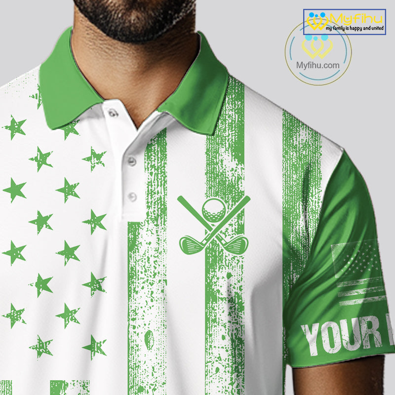 Personalized Green & White American Flag Retro Men golf polo shirts Custom Patriotic golf top for men NQS10309