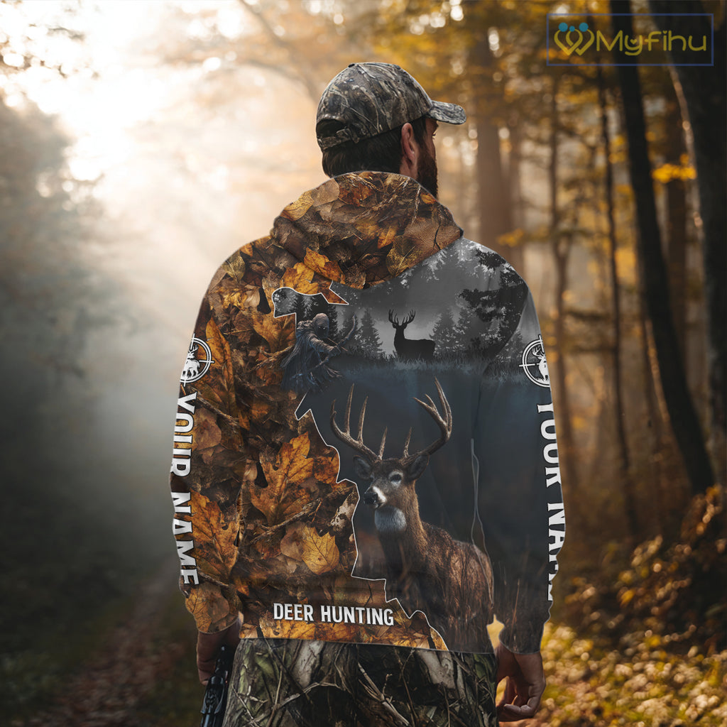 Inspired by the thrill of the hunt and the beauty of the outdoors, this shirt combines durability, comfort, and a unique hunting vibe. Customize it with your name or preferred design elements — from deer graphics to scenic landscapes — to create a one-of-a-kind piece. A perfect gift for passionate deer hunters and outdoor lovers, especially during hunting season.