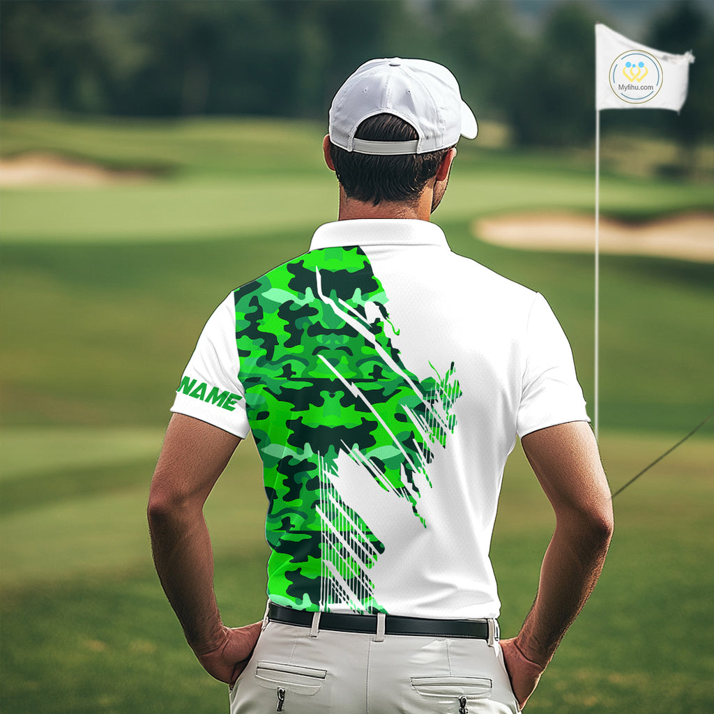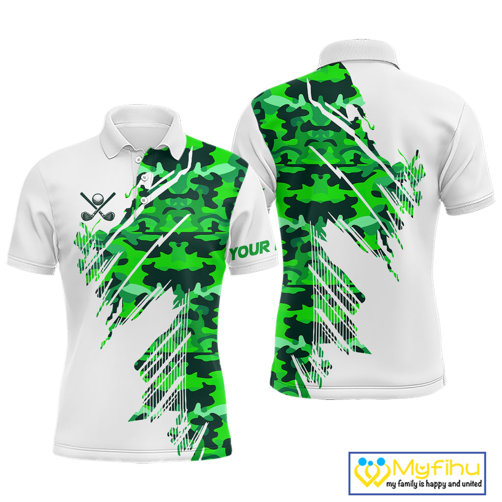 Personalized Mens golf polo shirts custom white and green camo mens golf apparel, golfing gifts NQS10334
