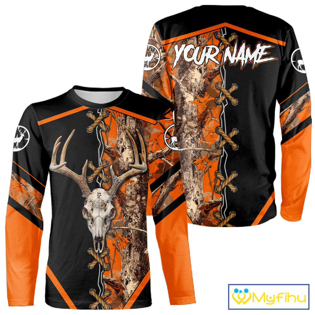 Personalized Orange Camo Black Skull Deer Hunting 3D Shirts, Perfect Gift for Hunters NHT281