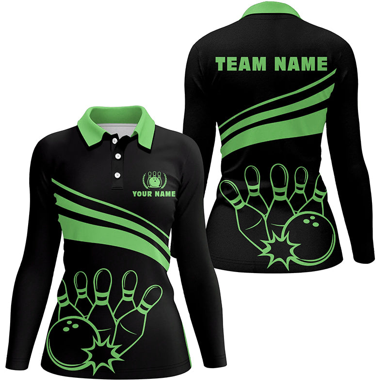 Personalized polo bowling shirts for women, custom black womens bowling shirts team bowl jersey| Green NQS6925