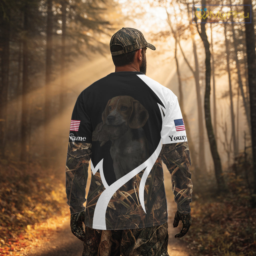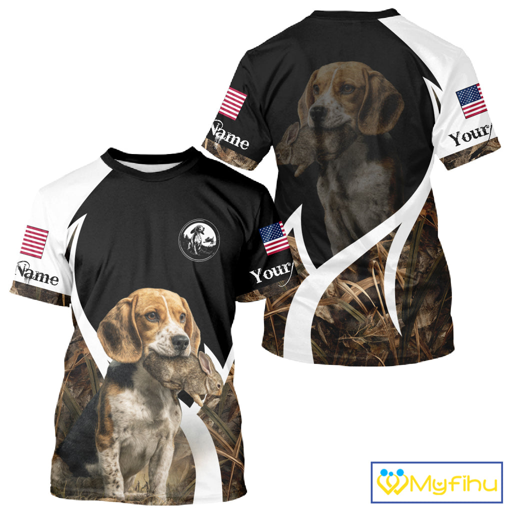 Personalized Rabbit Hunting Beagle Dog American Flag Details Camo 3D Shirts, Rabbit Hunting Gifts NBT216