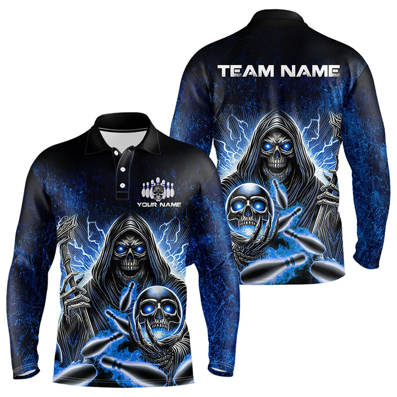 Personalized Skull Bowling Shirt For Men Custom Team Name Lightning Thunder Bowler Jerseys | Blue NQS9747
